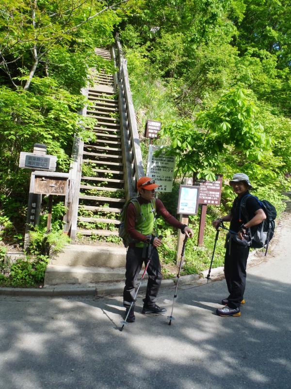 小出インターから登山口までのこの長い道のり(下道3時間)にコンビニが一軒もなく、ハラペコで登山開始となりました。