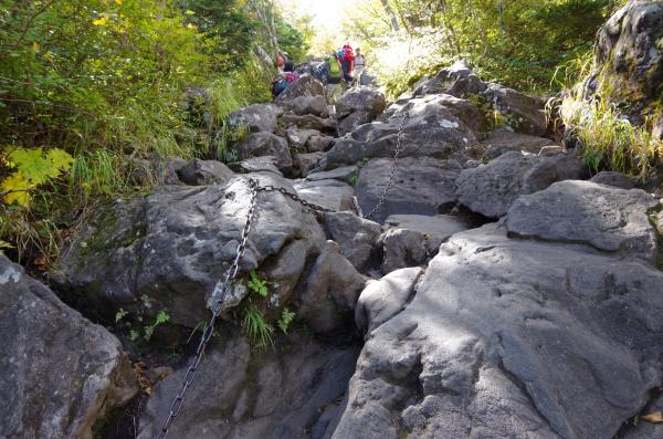 小屋から上は少し急な岩場ですが、足は置きやすい。