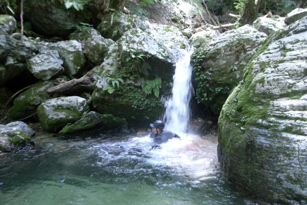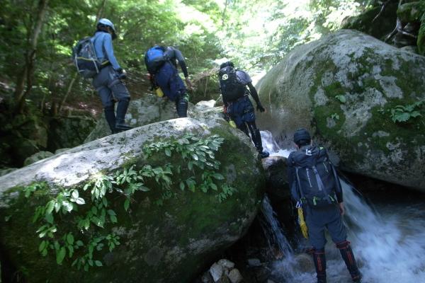 初心者の方にも行きやすい白滝谷。その小滝を登るのちょっと怖いかも…と思えば、巻いていくこともできるの安心して始めやすいルートです。