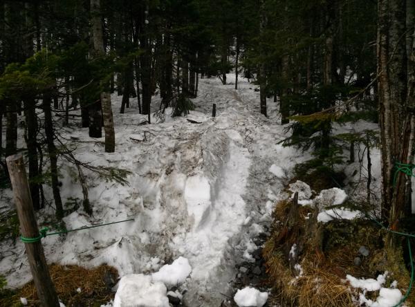 軽アイゼンなしでも歩けますが、有ると安心です。