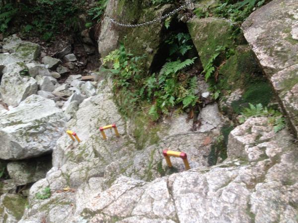 水場だけあって岩は苔が生えていたり濡れていたりで気を付けないと足を滑らせてしまいます。滑落の事故も多発している登山道みたいなので集中して登らないとですね。