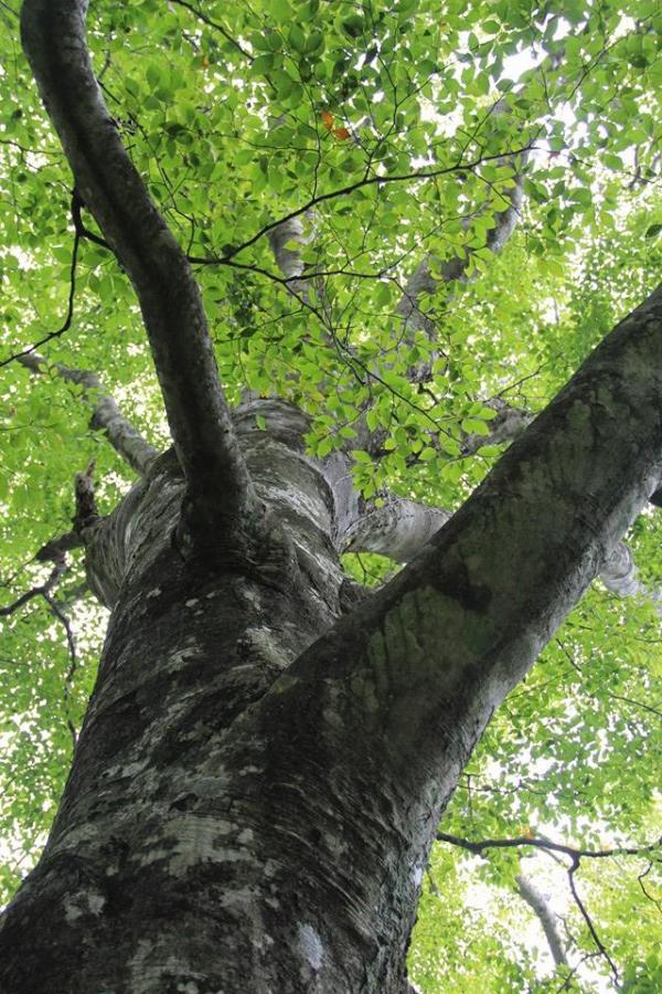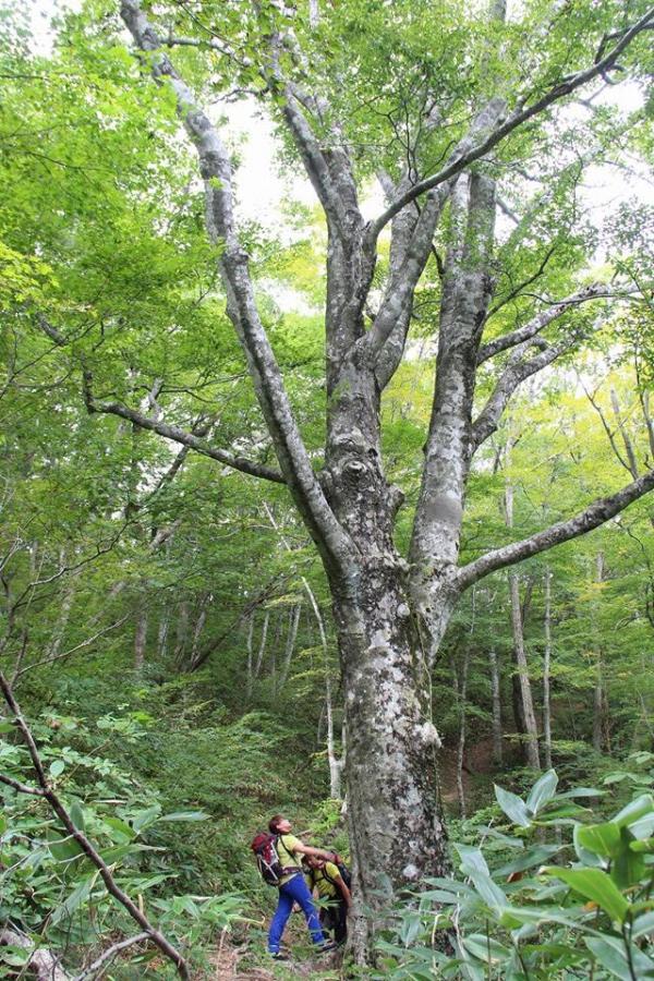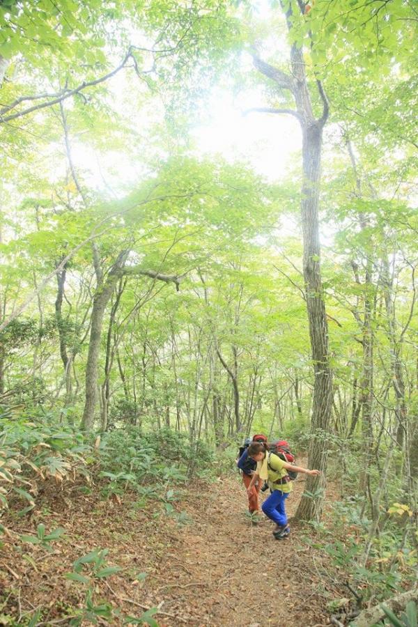 ブナ、ミズナラの自然林の中は気持ちの良い歩きです。