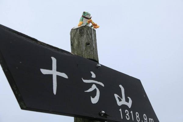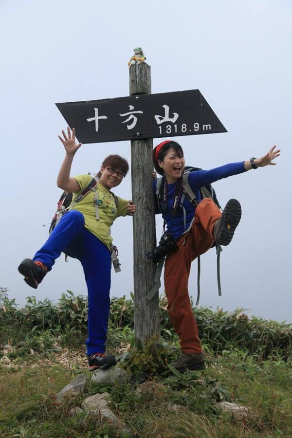 残念ながら・・ガス・。展望はなかったですが、標高差900m登ってきた達成感で山頂写真です。