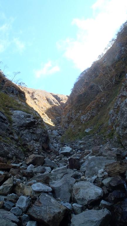 難しいところは特になく、しばらくは小滝とナメが出てくるが1000m位からはガレが頂上まで続きます。落石に注意。詰の藪こぎはほとんどありません。グレード2級