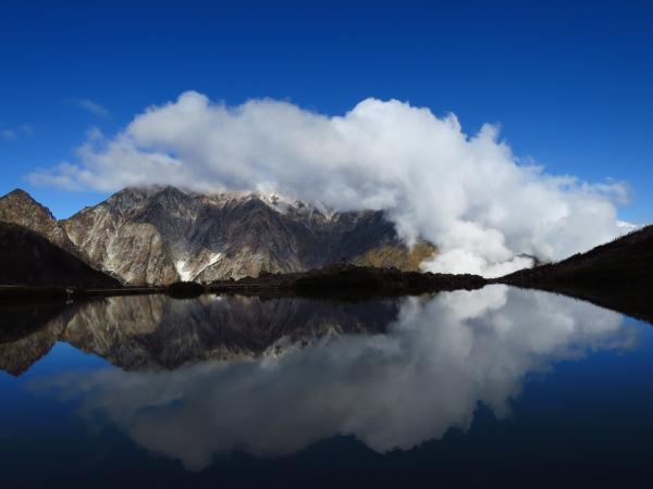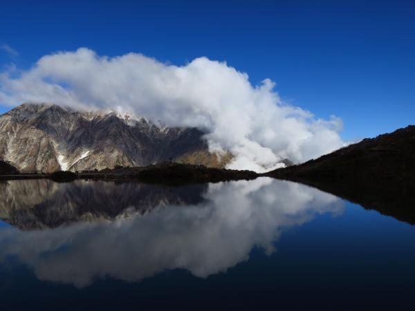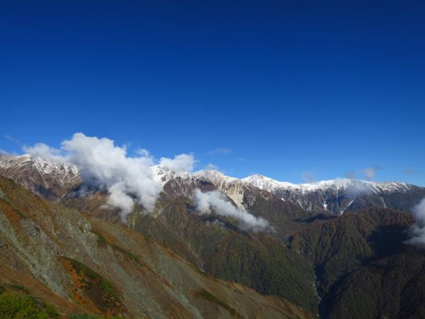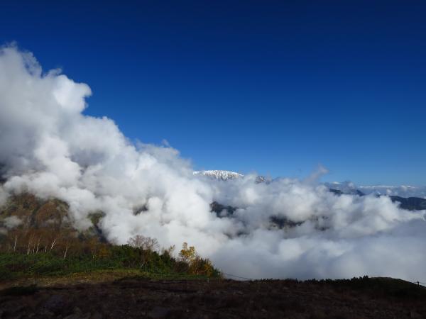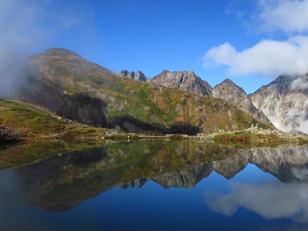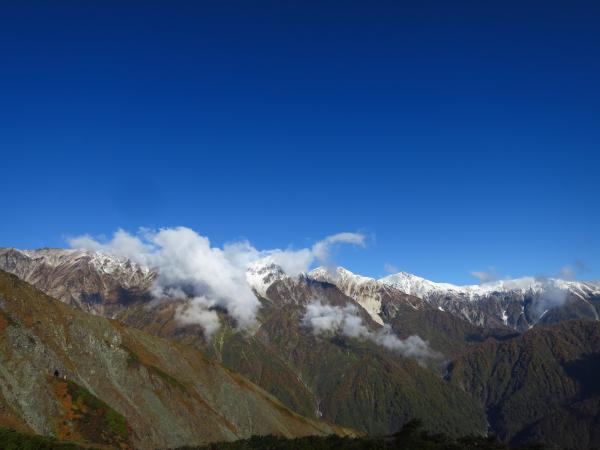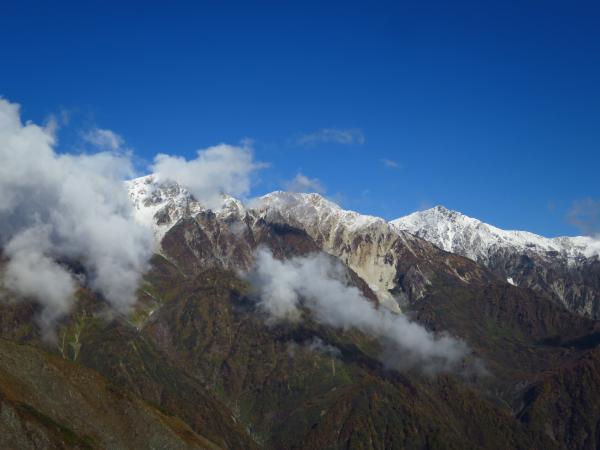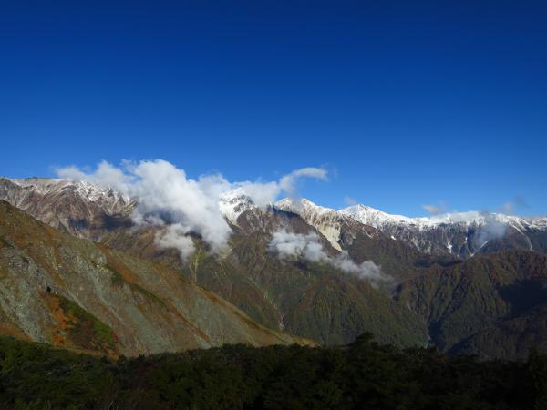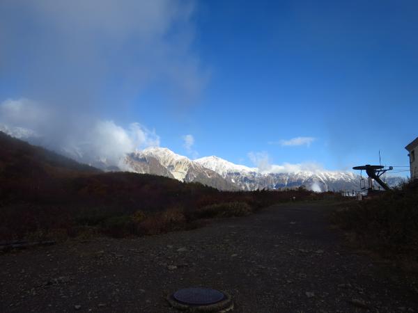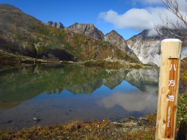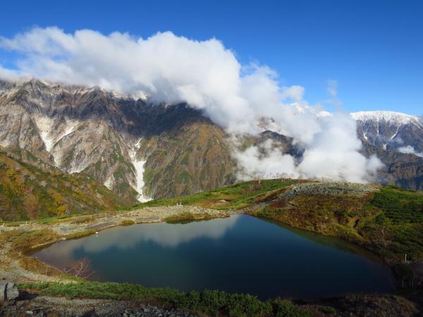 肝心の八方池到着時には白馬三山は雲に覆われて、綺麗な写真は撮れなかったが、今シーズンの初冠雪を生で見れたので良かった。