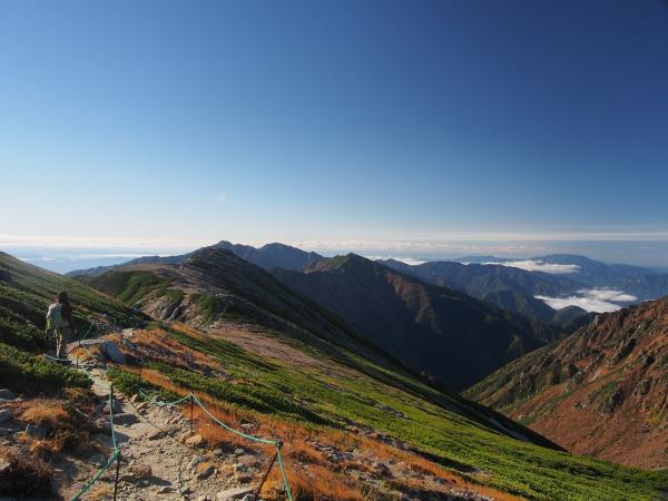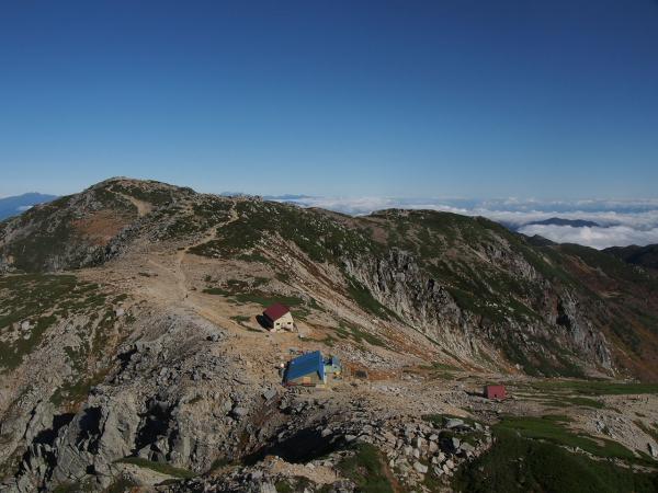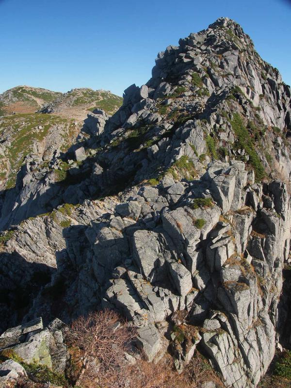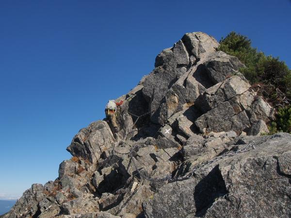 宝剣岳周辺・・・岩場、左右切れ落ちてるとこあり。手元、足元要確認。ヘルメット着用奨励山域。