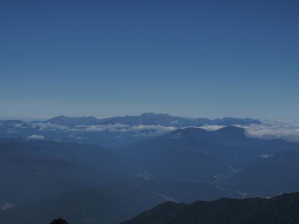 宝剣岳山頂より 中岳、駒ヶ岳、乗鞍岳。中岳の奥に北アルプスも♪