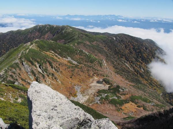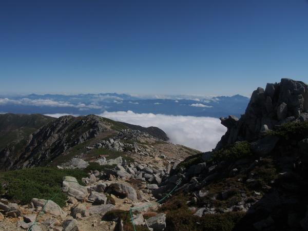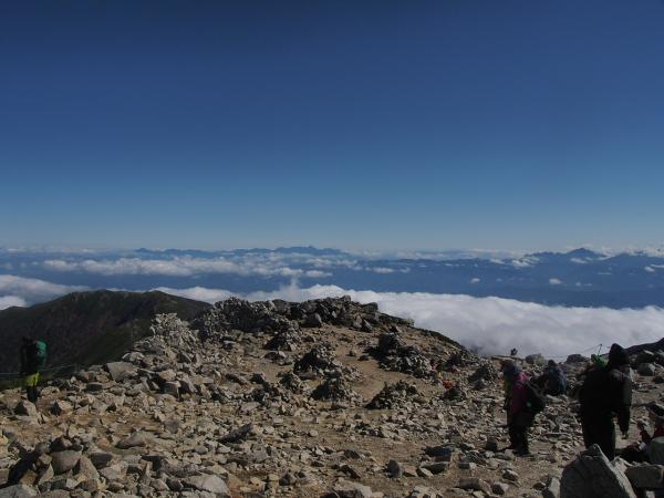 そして中岳を経て、木曽駒ヶ岳へ。山頂からは北アルプスが見え、立山や白馬方面は冠雪してました!