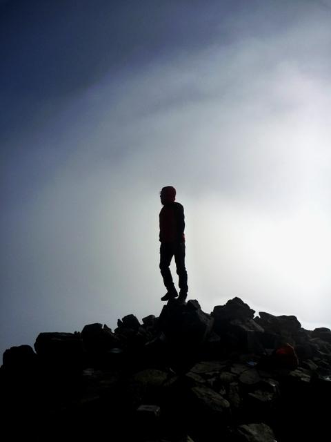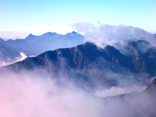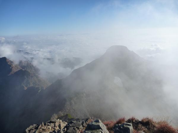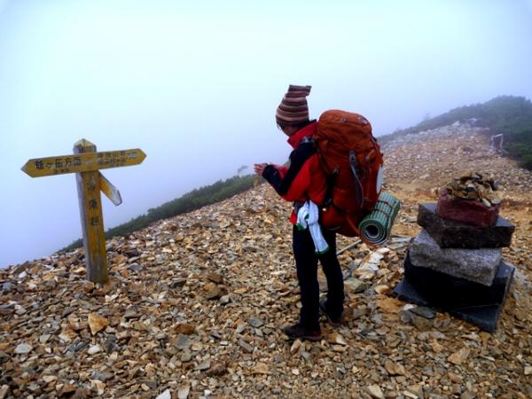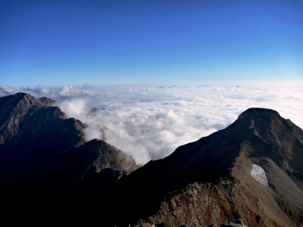 鹿島槍の頂上では初めはガスが濃くすっきりしませんでしたが、40分待って