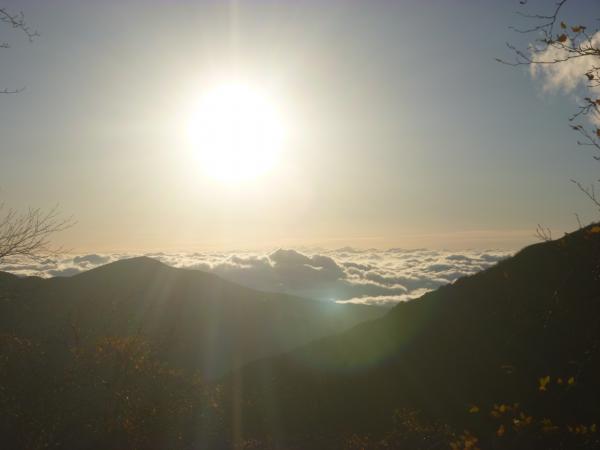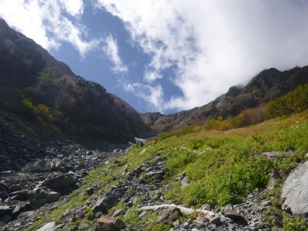 八本歯のコルを下りていくと、下の方は晴れていました。下りていく