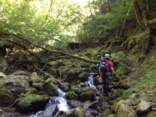 沢上では周囲の地形が確認しにくいため読図が難しいので、初心者の方は沢登りに慣れている方と一緒に行かれて下さい。