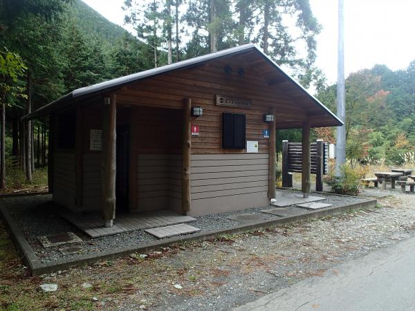 - 朝霧グリーンパーク入口バス停から麓集落を過ぎ、登山口ゲートまでは平坦な舗装道。すぐのところに朝霧グリーンパークがあり、温泉もあったようだが、今は閉鎖されているよう。「麓」という名の集落に、一部東海自然歩道とかぶっているところがあり、キレイなトイレがある。トイレはあとは最後の道の駅以外にはない。ちなみに登山者用の駐車場は、麓集落の手前にある。