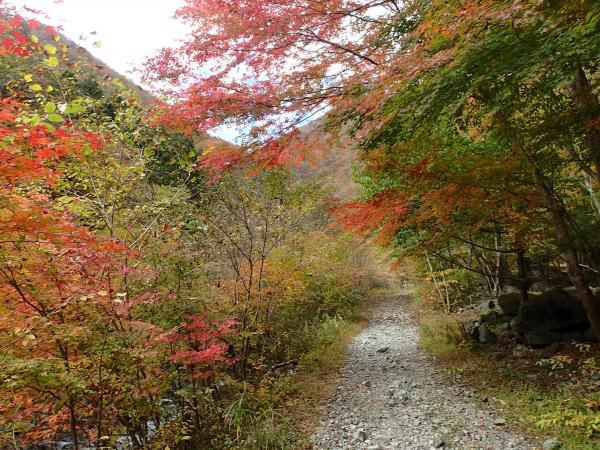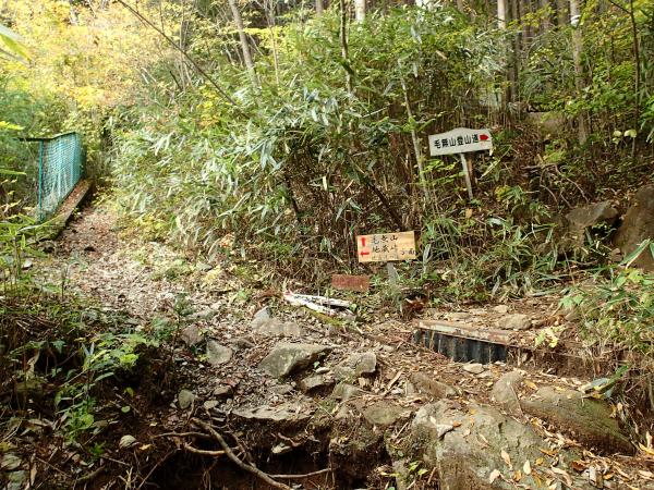 登山口ゲートには登山届があり、歩き出すとすぐに麓宮(神社)と、昔この辺りで金が取れたようで金鉱石採石場跡がある。沢沿いの道の紅葉が綺麗だった。地蔵峠への分岐を分けると急登が始まる。標高差1000mを2時間で登る急登。はさみ石とある岩場から先は、ロープのある岩場も結構出てくる。難易度的には高くないが、休む暇のない急登は登り応え抜群。1合目から9合目までプレートで表示してくれておりペースを作りやすい。2合目と3合目の間から紅葉に彩られた不動滝を望み、4合目の先のレスキューポイントで一息入れる。9合目の手前には狭いが富士山展望台があり、絶景の富士山が望める。稜線まで出ると急登は終わり、稜線はウソのようになだらかですぐに毛無山山頂。広場には三角点もあり、富士山も見えるが、少し先に歩くと一気に展望が開ける。最高地点もそちらとのことで歩くが大見岳まで来てしまう。どうやら最高地点は途中にあった字の消えかけたプレートの辺りだったよう。