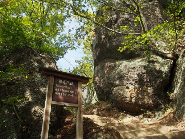 しばらく歩くと岩殿城に着きます。岩殿城から石の階段をひたすら登ると岩殿山山頂に到着です。