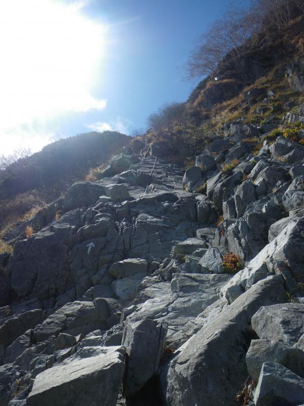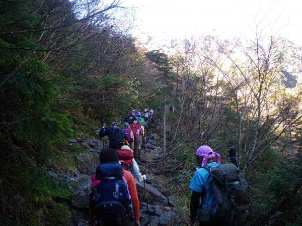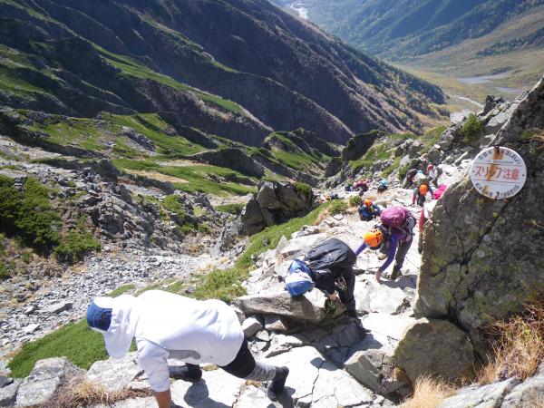 人為的な落石の可能性も高いので、ヘルメットは必要。