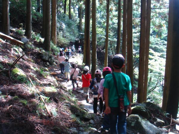 三谷登山口(立派なトイレあり)に着くと、駐車場には多くの車が!・・・平日なのになぜ?と思いながら登山開始。登りはじめてすぐに急登。そして多くの子供たちが山を下りてきました。