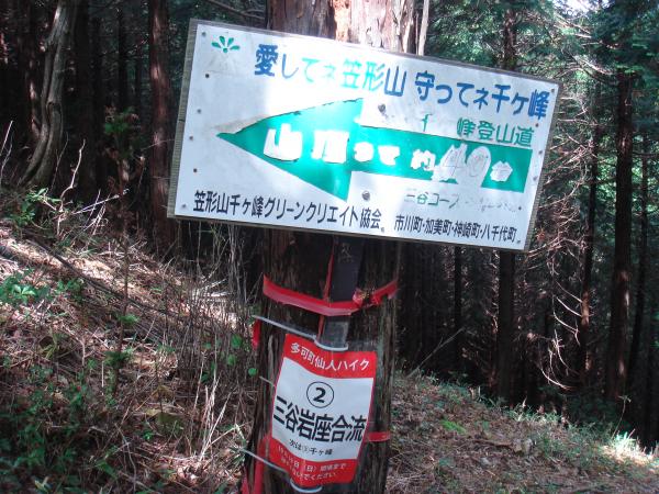 - 11:10三谷登山口⇒11:25雄滝、雌滝⇒11:55岩座神道出合⇒12:30千ヶ峰頂上⇒13:50岩座神出合⇒14:20三谷登山口
