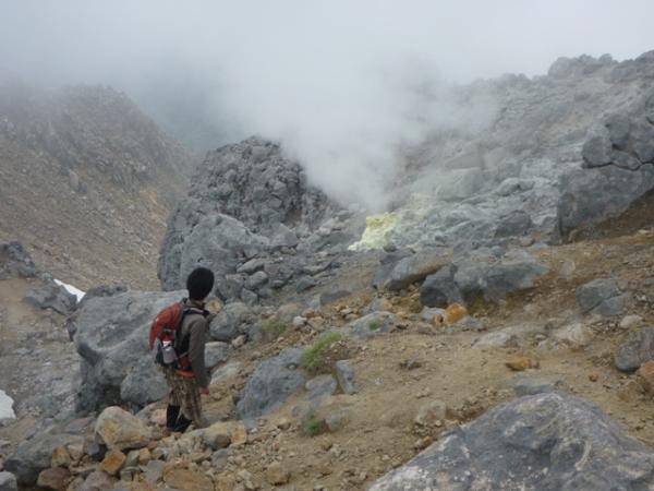 山頂付近では火山ガスが勢いよく噴出し、迫力があります。