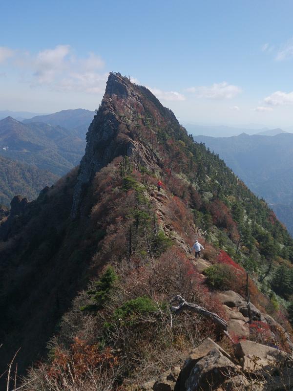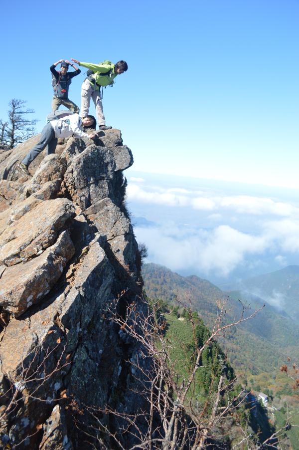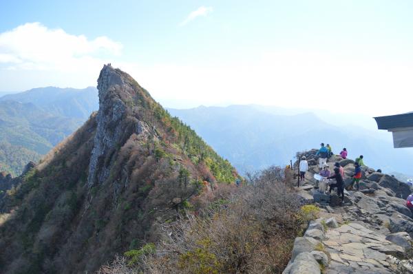 神社から先、天狗岳と南先鋒へ行く際は、足場がかなり切り立っていますので、十分に注意してください。