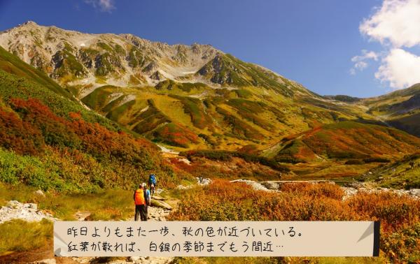 幸い天気も良く、快適な登山となりました。今年は例年より気温が低いせいか、すでに紅葉が始まって秋の雰囲気が漂っていました。