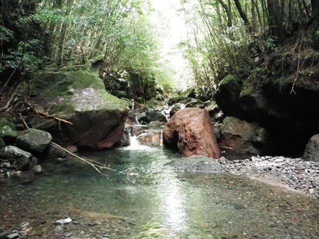 梅雨の期間に大量に雨が降ったみたいで、沢の状況がかなり変っていました。ゴルジュが崩れた影響で沢の中が明るくなりましたが、土砂が堆積して荒れた雰囲気になつていました。