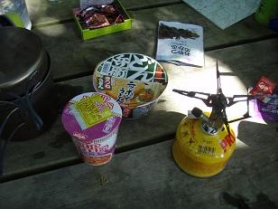 石老山の山頂はベンチもありご飯を食べました、今回も手抜きでカップ麺です