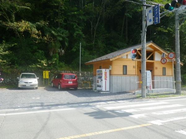 ■橋場には綺麗なトイレと自動販売機があります。車5台分程の駐車スペースがあります。