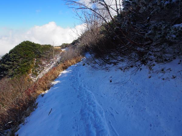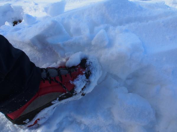 積雪量は多い所で15センチくらいでしたが、アイゼンなしでも歩けます。