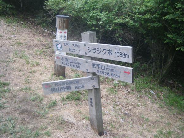 シラジクボからは15分ほどで下山できる持山寺ルート分岐があります。そこは無視して急な登りと書かれている小持山へ向かいます。