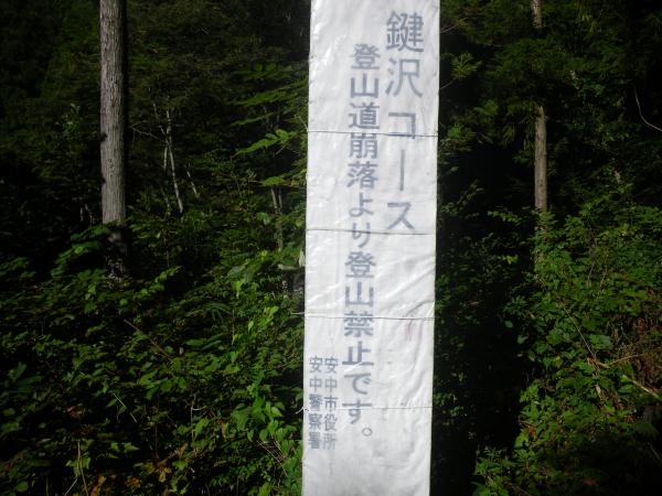 ・鍵沢コース登山道崩落より登山禁止