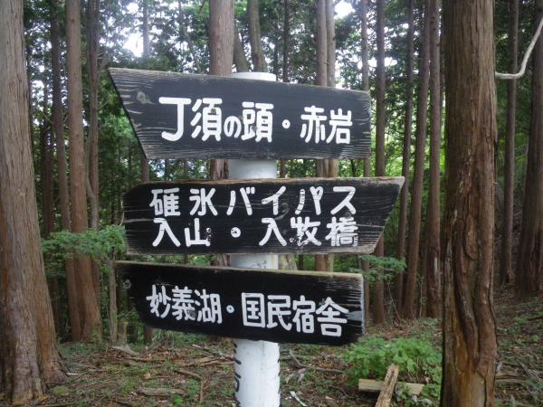 - 国民宿舎<5分>登山口<70分>丁須ノ頭<50分>赤岩<50分>三方境<60分>国民宿舎