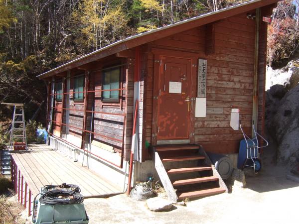 ストックをしまい上り続けると七丈小屋に到着。テントを張り先ずは少し休憩。トイレもきれいでした。