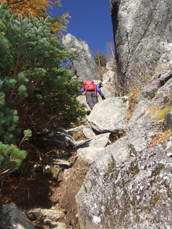 小休止をとりながらどんどん上るとようやく刃渡りが出てきました。刃渡り付近からはしごや鎖場が出てきます。慎重に3点支持で通過します。