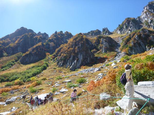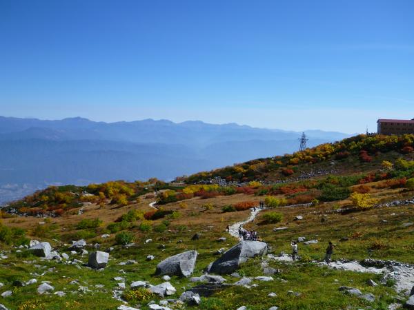 - 千畳敷ロープウェイ乗り場(30分)極楽平(60分)宝剣岳(80分)木曽駒ヶ岳(50分)浄土乗越(50分)千畳敷ロープウェイ乗り場・・・【約5時間の行程】