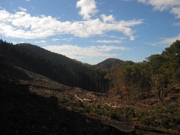 峰山高原へ続く林道へ入ると、9月に訪れた時より伐採が進んでおり、景色が一変していました。