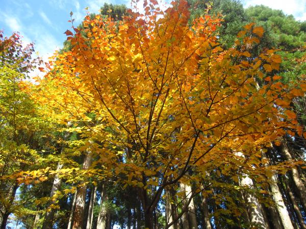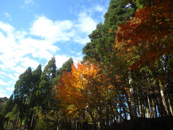 遠くの山々が色づいているのを見ながら、砥峰高原を後にし進んでいくと、進む道にも紅葉している木々が★