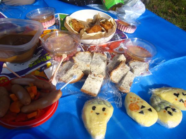 持ち寄りのおがずは、トルティーヤ・マッシュポテト・カレーフォンデュ・チーズケーキ