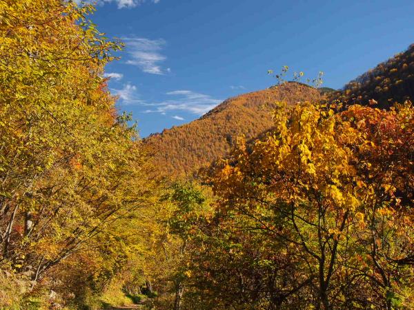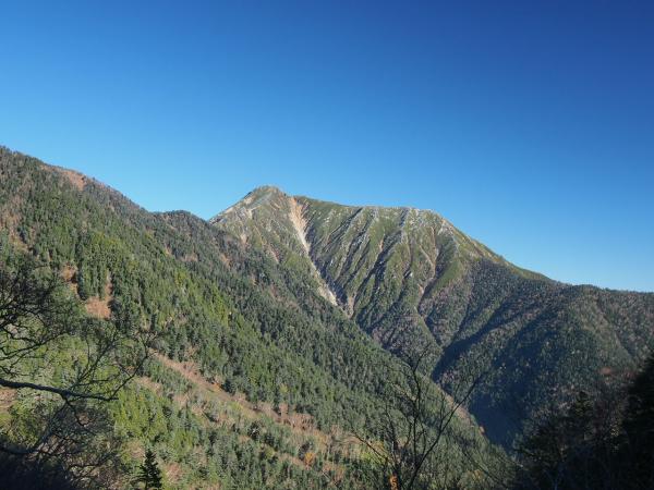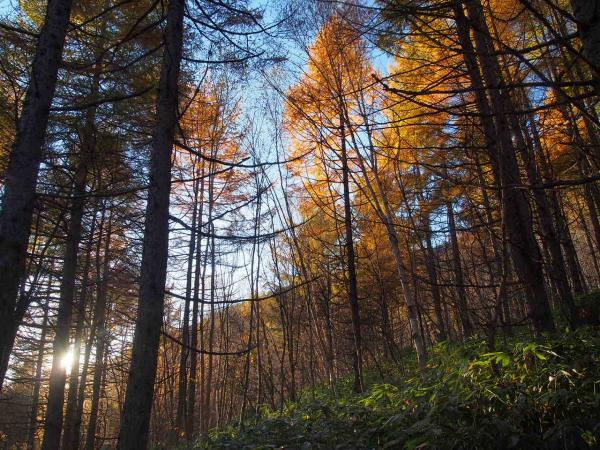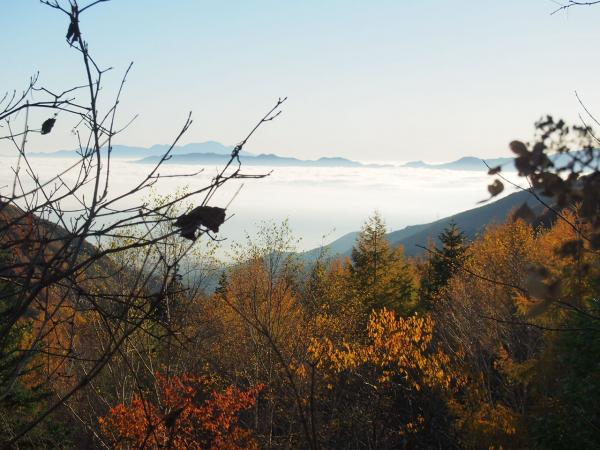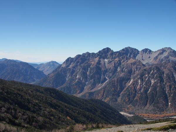樹林帯が長いですが、山麓の紅葉と途中で見える常念岳に元気をもらいます。