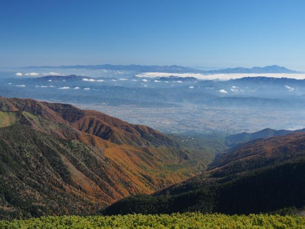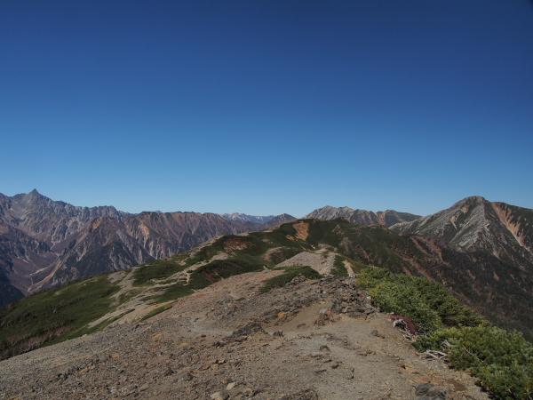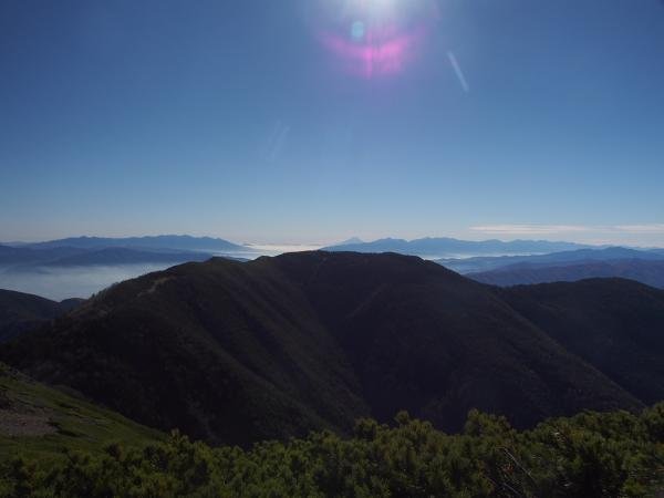 稜線に出れば山頂もすぐそこ。上信越の山々、八ヶ岳、富士山、南アルプスなどなど。