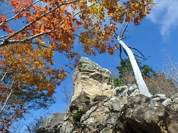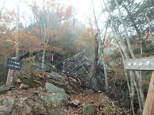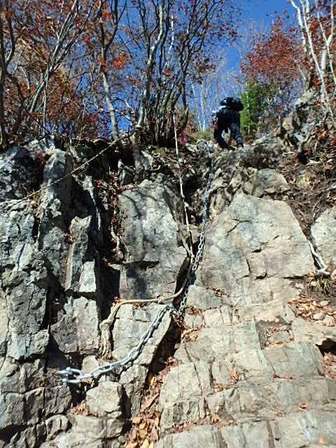 産体尾根の稜線の登りには数か所に鎖場やロープが設置されていますが困難な箇所はありません。