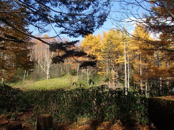 登山道前半は、池山周辺の遊歩道となっており、ダケカンバやカラマツ林が広がり紅葉もキレイでした。紅葉もピークで今が見ごろですが、上半分は紅葉が終わり、葉も散ってしまっていました。