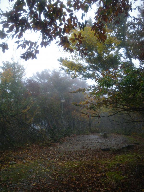 頂上直下の芝生の広場、天気が良ければ三方五湖の展望も素晴らしいとのことでしたが今回は生憎の雨。風も強く風神様がまつられているのも納得でした。