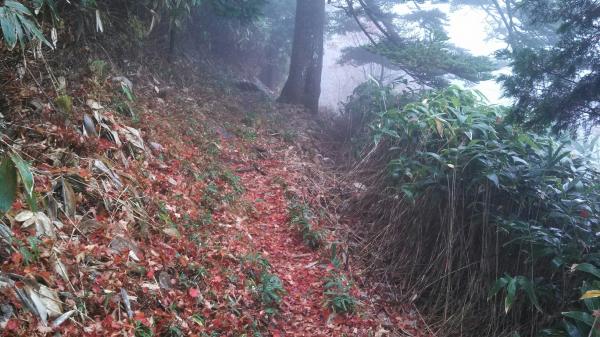 - 前夜の雨が今朝まで続いて、神沢峠から稜線にでる迄の登山道は、樹の根が滑りやすく、ちょっと歩きづらい。山頂付近は小石がゴロゴロしていますが、歩行時間も短いので、簡単なトレッキングシューズでも十分でしょう。
