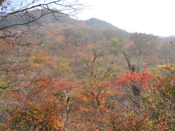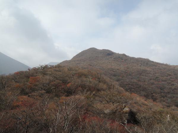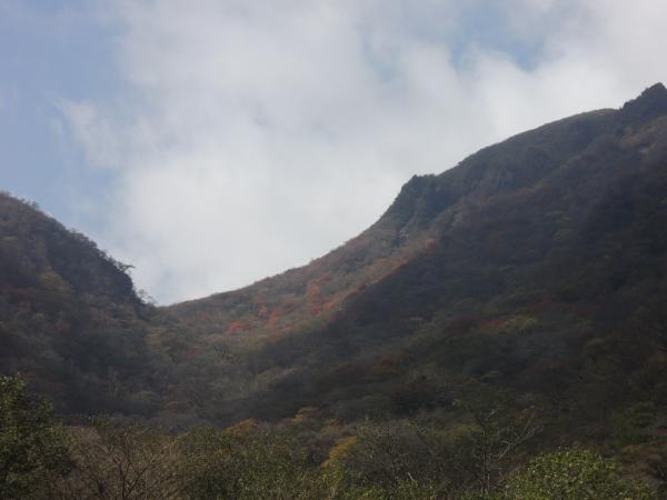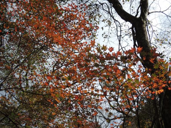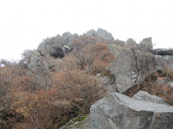 春の石楠花と秋の紅葉のきれいな山で楽しみな山ですが、今回は紅葉の葉が登山道を埋め尽くしており、少し遅かったようですが木によっては真っ赤になっていました。