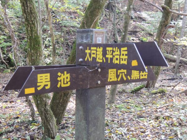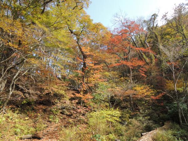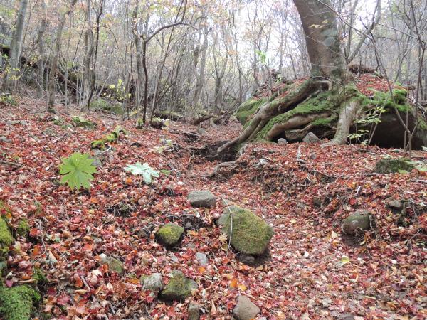 ソババッケより風穴までは岩の多い登山道で左右の紅葉が楽しませてくれます。
