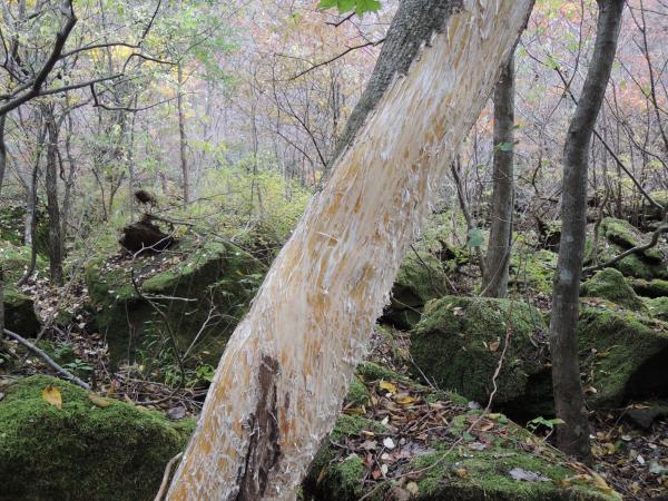 今回は鹿の鳴き声があちこちから聞こえ、一部の木の皮が剥がれてしまってました。