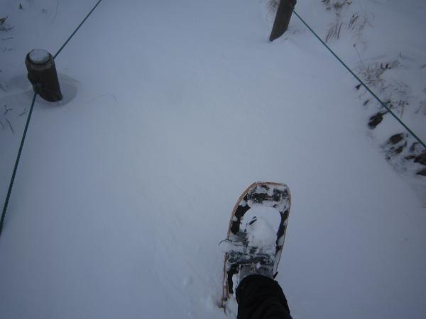 降雪直後の為アイゼンは使わずスノーシュー利用