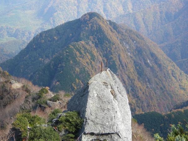 紅葉は見頃でした。紅葉の中に日向山の白さが眩しく綺麗でした。