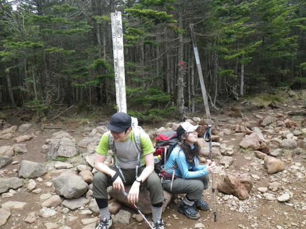 縞枯山荘まで行くのはあきらめて頂上で下ることにしました。