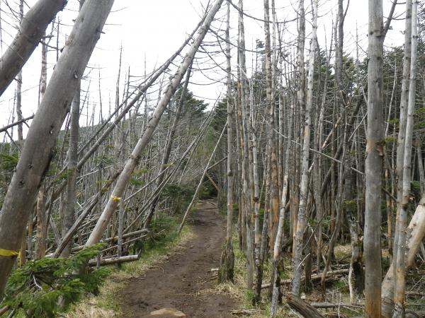 茶臼山を越えた先の縞枯山も独特の雰囲気がありました。(ほんとに木が枯れてました。)
